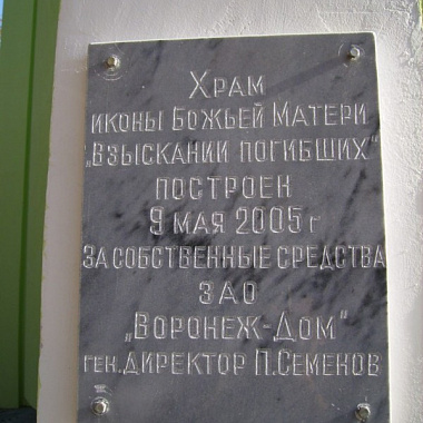 В Воронеже был раньше храм, который был возведен в честь святой иконы с наименованием "Взыскание погибших". Ориентировочно в середине 1935 г., он по определенным обстоятельствам был закрыт, а в 1960 г., храм разрушили. После десяти лет, был снова освещен новый храм "Взыскание погибших" в честь святой иконы. Эта церковь считается памятником-храмом для всех жителей города Воронеж, которые погибли, а также отдали свою жизнь при исполнении служебного долга в 20 веке. Процесс строительства церкви начался в 1998 г., по приказу главы города. Храм должен был быть построен вблизи с Коминтерновским кладбищем. 13.04.2004 г., митрополит Сергий осветил начатое строительство храма и новый крест, который должен был быть установлен на купол строящейся церкви. Строительные работы по возведению нового храма были завершены в середине 2005 г. Празднование 60 летия победы над врагом в ВОВ проходило в 2005 г. Святой митрополит Сергий завершил чин и выполнил малое освещение нового храма, который построен в Воронеже. На этом торжественном мероприятии присутствовало большое количество представителей от региональной власти.