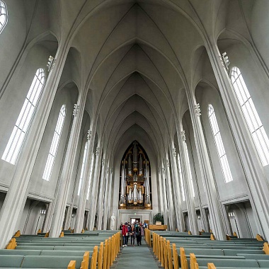Проект главного лютеранского храма для столицы Исландии был разработан ещё в 1937(!) году местным архитектором Гудйоуном Самуэльсоном. А вот процесс строительства растянулся на долгие тридцать восемь лет. Начав свой труд в год окончания Второй Мировой войны, строители завершили возведение церкви только в 1986 году. При этом крипта и хоры были построены в 1948 году, а башня и крылья — в 1974-м; последующие двенадцать лет заняли отделочные работы. Колоссальные затраты времени, средств, человеческих ресурсов и строительных материалов, несомненно, стоили того. Куда бы вы ни отправились в Рейкьявике, Хадльгримскиркья видна с любой из точек в городе.