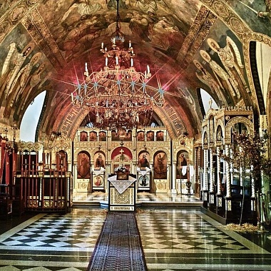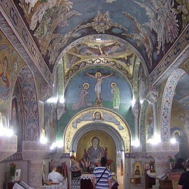 Иконостас церкви в моравском стиле работы резчика Косты Тодоровича украшен тончайшей резьбой с позолотой. Иконы для него написал иеромонах Рафаило Момчилович. Заднюю часть нефа церкви украшает роспись на тему Нагорной проповеди Господа Иисуса Христа; среди внимающих словам Спасителя изображены сербский король Александр I, российский император Николай II, королева Мария Карагеоргиевич и военный священник Петар Трбоевич. Создал это величественное произведение изобразительного искусства художник Андрей Биценко, представитель русской академической живописи.