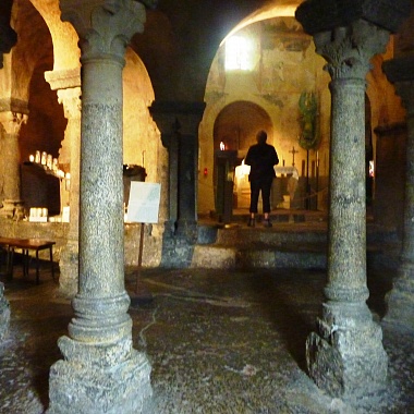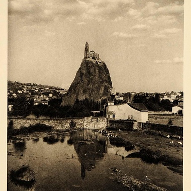 Издалека церковь Сен-Мишель д’Эгиль на вершине скалы кажется почти неприступной — и действительно, в средние века (а, возможно, и раньше) скала, на которой она стоит, служила убежищем для местных жителей во время многочисленных войн. Вера в то, что здешние места — особенные, пожалуй, всегда была свойственна жителям Ле-Пюи-ан-Веле. Согласно преданию, в 430 году здесь произошло явление Пресвятой Девы Марии, которое видели все жившие тогда в городке люди. А в 1429 году восхождение в храм совершила мать причисленной к святым национальной героини Франции — Жанны Д’Арк — чтобы помолиться здесь Господу Богу.