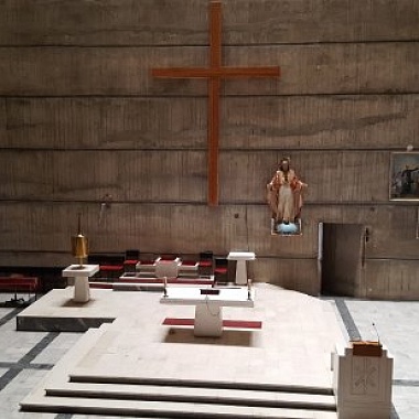 Католическая община в Подгорице не очень многочисленная, традиционно ей вполне хватало одного храма, построенного в конце XIX века — однако, как уже было сказано, в войну он перестал существовать. Вместо того, чтобы восстанавливать старую церковь, четверть века спустя, в «золотой век» Социалистической Федеративной Республики Югославия, возвели другую, принципиального иного вида. Издали нынешняя церковь святого Сердца Иисуса напоминает парусное судно с единственной мачтой. Интересно, что церковь не была закончена: её фасад остался незавершённым, что придаёт зданию несколько странный вид