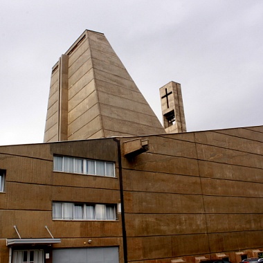 Благоговейное почитание сердец Господа Иисуса Христа и Пресвятой Девы Марии распространено в католицизме — им поклоняются и посвящают храмы. Вот и хорватский архитектор Звонимир Верклян в 1969 году построил на месте старой католической церкви, полностью разрушенной во время Второй Мировой войны, новую, в очень своеобразном стиле. Архитектурное решение церкви Святого Сердца Иисуса принято классифицировать как модернистский брутализм. Здание это необычно даже для Подгорицы, где встречаются постройки самых разнообразных стилей.