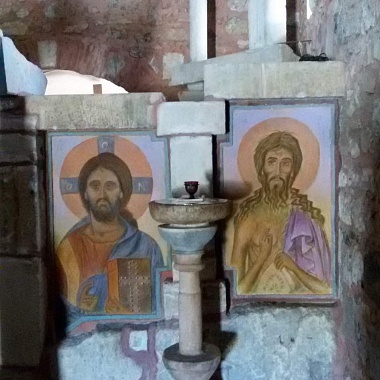 На подворье церкви Папафеодор выстроил Мемориал героев — в память о местных уроженцах, павших в войнах. Его вид сразу же вызывает ассоциации с постройками на афинском Акрополе. Рядом с церковью располагается и Колодец святого Иакова. Ведь именно у колодца встретила Спасителя самарянка, которую в православной традиции принято звать Фотинией (калька с этого слова на русский язык породила такое знакомое нам имя Светлана).