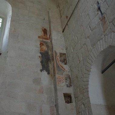 Интересно, что храм Бориса и Глеба был расписан несколько позже, чем было завершено строительство — только в 80-х годах XII века. Произошло это в годы правления князя Всеволода III, известного в русской истории по прозвищу Большое Гнездо. Росписи храма изобилуют изображениями райских деревьев и птиц. Фрагменты старинных фресок были открыты археологами в 1947 году. Сохранились фрески и в нише, сделанной в северной стене, под клиросом — на них изображен Господь Иисус Христос и святые.