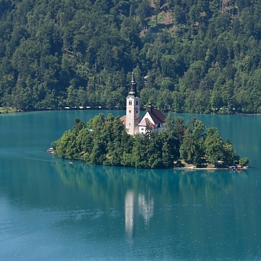 Расположенная на единственном во всей Словении острове посреди озера, Церковь Успения Девы Марии (Cerkev Marijinega Vnebovzetja) считается одним из самых красивых и романтических мест во всей стране. Не случайно именно её выбирают для венчания многие пары, решившие связать себя узами брака.