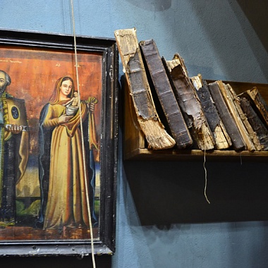 Особо стоит сказать и о находящихся в церкви иконах. Самые старые из них, выполненные в XVII-XIX веках, подверглись тщательной реставрации. С некоторых из них мастерам приходилось снимать не один, а два поздних слоя, чтобы добраться до самого старого изображения — и заставить его снова засиять. Один из образов, на котором запечатлена беседа Спасителя с Самарянкой, был написана молдавским художником: на нём можно увидеть местную мужскую и женскую одежду, с точным воспроизведением здешних орнаментов. Другой старинный образ, с изображением снятия с Креста, выполнен на полотне методом рельефной живописи. Одна из старых икон, находящихся в церкви Успения, написана монахами Святой горы Афон. А на подворье церкви находится ещё один образец молдавского деревянного зодчества — распятие: искусно выполненное, его привезли с сельского погоста, где раньше стоял храм.