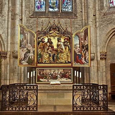 Центральный алтарь собора был создан в 1521 году Мартином Шаффнером. Внутри него можно увидеть сцены, изображающие Пречистую Деву с Её матерью, праведной Аннной, и Младенцем-Христом — а также Тайную Вечерю. Этот алтарь иначе называют алтарём Хутца — по имени главного жертвователя, представителя известной в Ульме фамилии, взявшего на себя расходы по созданию этого произведения искусства.