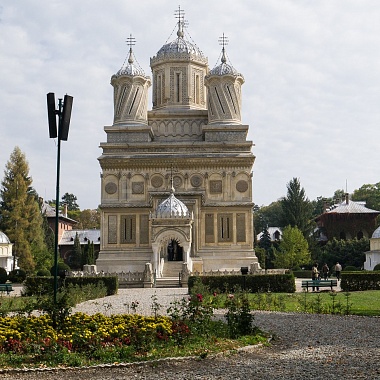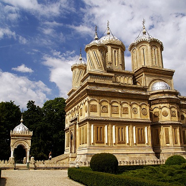 Куртя-де-Арджеш (Curtea de Argeș) — типичный провинциальный городок в Румынии с населением чуть больше тридцати тысяч человек. Именно здесь расположена одна из самых старинных и красивых церквей в этой стране — Успенский архиерейский собор. Она же — возможно, самая причудливая в Румыне плане своего архитектурного решения. Её популярность среди туристов, посещающих эту страну, сопоставима с популярностью храма Василия Блаженного на Красной площади в Москве — вот только размеры несколько меньше.