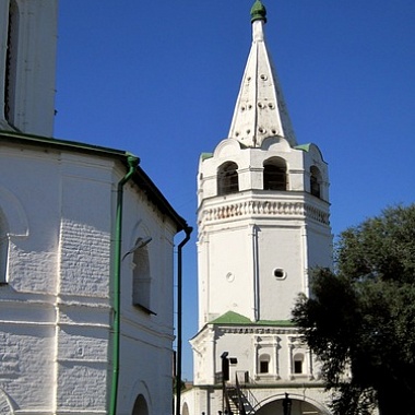 И собор, и составляющая с ним единый архитектурный ансамбль восьмигранная шатровая колокольня, сложены их кирпича на каменных погребах, а сверху покрыты железом. На двух нижних этажах колокольни в XVIII веке хранился Войсковой архив, а в её подклете держали преступников.