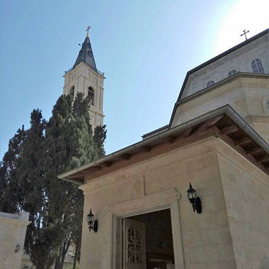 Женский Вознесенский монастырь расположен на горе Елеон, в восточной части Иерусалима. Он относится к Русской Православной Церкви Заграницей, чья миссия на Святой Земле располагается именно в этой обители. Вознесенский монастырь быль основан в 1906 года в непосредственной близости от места Вознесения Господня. В годы Первой Мировой войны русское духовенство обители по указу турецких властей было выдворено со Святой Земли — и вернулось только в 1919-м, во времена Английского мандата. Раскинувшийся на площади в пять с небольшим гектаров монастырь Вознесения имеет на своей территории масличную и сосновую рощи, трапезную, археологический музей и кладбище. Со всех сторон обитель окружена плотной арабской застройкой. К богослужебным зданиям монастыря относятся часовня Иоанна Предтечи, трапезный храм праведного Филарета Милостивого и главный собор Вознесения Господня. Собор Вознесения в неовизантийском стиле был построен итальянским архитектором Джованни Батистой Бизелли гораздо раньше возникновения монастыря — в период с 1873 по 1898 год, причем строительные работы приостанавливались во время русско-турецкой войны 1877-1877 годов. Торжественное освящение собора прошло в 1886 году после особого дозволения султана. В начале XX века прихожане собора называли его «маленькой святой Софией» – считается, что это иносказание принадлежит основателю монастыря, архимандриту Антонину (Капустину), который похоронен в северной части храма. В архитектурной точки зрения собор представляет собой крестово-купольный храм с выдающимися на четыре стороны полувосьмерками абсид. В Вознесенском соборе пребывают почитаемые чудотворными иконы Божией Матери — «Елеонская Скоропослушница» (Черниговская-Гефсиманская) и «Взыскание погибших». Здесь же находится большое собрание мощей в мощевиках — а в пол перед солеёй вмонтированы мраморные плиты женского монастыря, действовавшего здесь в пятом веке нашей эры. Часовня Обретения честной Главы Иоанна Предтечи 1910 года постройки стоит на том самом месте, где дважды была обнаружена эта великая святыня — глава Крестителя Господня. Византийская часовня в память о тех же событиях стояла здесь уже в IV веке — ее основание было обнаружено при раскопках. На полу часовни отделанные мозаикой углубления указывают на место, где была обретена честная Глава и где она пребывала.
