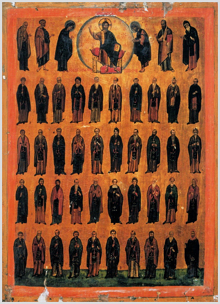 Мина Синайский Исаия Синайский Савва Синайский Моисей Синайский Моисей Синайский Иеремия Синайский Павел Синайский Адам Синайский Сергий Синайский Домн Синайский Прокл Синайский Ипатий Синайский Исаак Синайский Макарий Синайский Марк Синайский Вениамин Синайский Евсевий Синайский Илия Синайский Иосиф Аналитин, Раифский Феодул Синайский Всеволод (в Крещении Гавриил) Новгородский, Псковский Елена Константинопольская, царица Иоанн Лествичник, Синайский Анастасий I Синаит, Антиохийский Анастасий Синайский Феодор Сикеот, Анастасиупольский Варфоломей (Нафанаил) Лука Евангелист, иконописец Климент Епиподий Лионский Виталий Александрийский Платон (Йованович), Банялукский Собор преподобных отец, на Богошественной Горе Синай подвизавшихся Евстафий Малаховский Димитрий Власенков Елисей Акакий Синайский Илия Фесвитянин Григорий Синаит Иисус Навин, праотец Моисей Боговидец Иулиан Персиянин, пустынник Галактион Емесский (Финикийский) Епистимия Емесская (Финикийская) Нил Постник, Синайский, отшельник Иустиниан I Управда, Византийский, император Екатерина Александрийская, дева