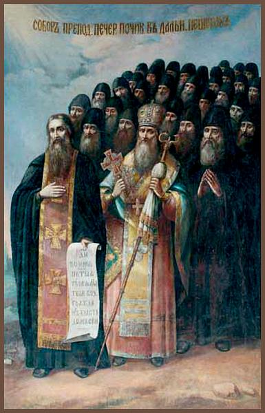 Игнатий Печерский Филарет Киевский (Амфитеатров), в схиме Феодосий Ахила Печерский Григорий Печерский, затворник Макарий Печерский Евфимий Печерский Лаврентий Печерский, затворник Владимир (Богоявленский), Киевский Зинон Печерский, постник Анна Пророчица, дочь Фануилова Панкратий Печерский, затворник Пафнутий Печерский, затворник Феодор Печерский, Молчаливый Агафон Печерский Тит Печерский, бывший воин Софроний Печерский, затворник Захария Печерский, постник Ипатий Печерский, целебник Геронтий Печерский, канонарх Иосиф Печерский, Многоболезненный Руф Печерский, затворник Феодосий Печерский Иов Почаевский Арсений Печерский, Трудолюбивый Пимен Печерский, постник Силуан Печерский Леонтий Печерский, канонарх Анатолий Печерский, затворник Сисой Печерский Памва Печерский, затворник Паисий Печерский Моисей Печерский Феодор Васильевич Острожский, Печерский, князь Моисей Мурин, Эфиопский Собор преподобных отцов Киево-Печерских, в Дальних пещерах (прп. Феодосия) почивающих Савва Крыпецкий, Псковский Шушаника (Шушаник, Сусанна) Ранская (Грузинская) Алексий Будрин Сергий (Зайцев) Лаврентий (Никитин) Серафим (Кузьмин) Феодосий (Александров) Леонтий (Карягин) Стефан Георгий Тимофеев Иларион Правдин Иоанн Сретенский Сергий Галин Александр Медведев Николай Георгиевский Василий Сокольский Павел Печерский, Послушливый Дионисий Печерский, Щепа Аммон Печерский, странник, затворник Амфилохий Печерский, Владимиро-Волынский Вениамин Печерский, затворник Лукиан Печерский Лонгин Печерский, вратарь, Трудолюбивый Иларион Печерский Мартирий Печерский Мартирий Печерский, затворник Феофил Печерский, Новгородский Нестор Печерский, Некнижный Меркурий Печерский, постник Афанасий Печерский, затворник Мардарий Печерский, затворник