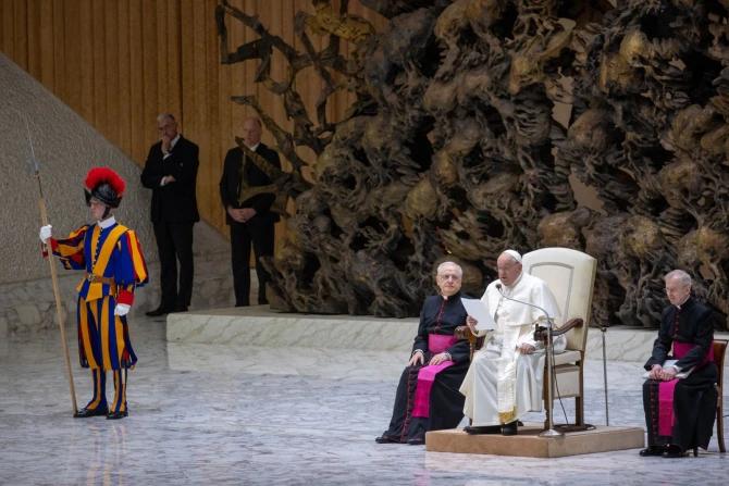 “The apostle Peter exhorted the first Christians with these words: ‘Sanctify Christ as Lord in your hearts. Always be ready to make your defense to anyone who asks you for a reason for the hope that is in you’ (cf. 1 Pt 3:15),” the pope told his listeners gathered inside the Vatican’s Paul VI Hall.