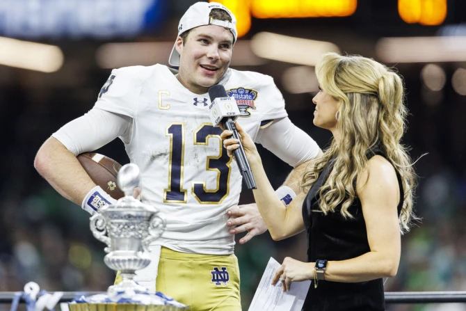 This is great. Notre Dame QB Riley Leonard gives thanks to Jesus on ESPN postgame after the Irish advance past Georgia. “Without Him, I wouldn’t be here.” pic.twitter.com/D2g09mwnA5