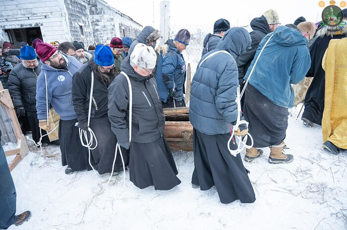 "By the Grace of God, His Grace Bishop Alexy, together with clergy and faithful from throughout the diocese, successfully found and exhumed the relics of St. Righteous Olga O'Michael and transferred them from her grave to the Russian Orthodox Church of St. Nicholas the Wonderworker. During the ceremony of unveiling the relics, hundreds of pilgrims gathered around her honorable grave. Breaking through ice and rocks, the priests of the diocese labored for more than six hours, while the Holy Gospel was read. While the coffin was being lifted and while her honorable remains were being carried to the church, the fathers of the diocese prayed to Righteous Olga for the health of more than 2000 people whose names were sent to the diocese for this purpose.