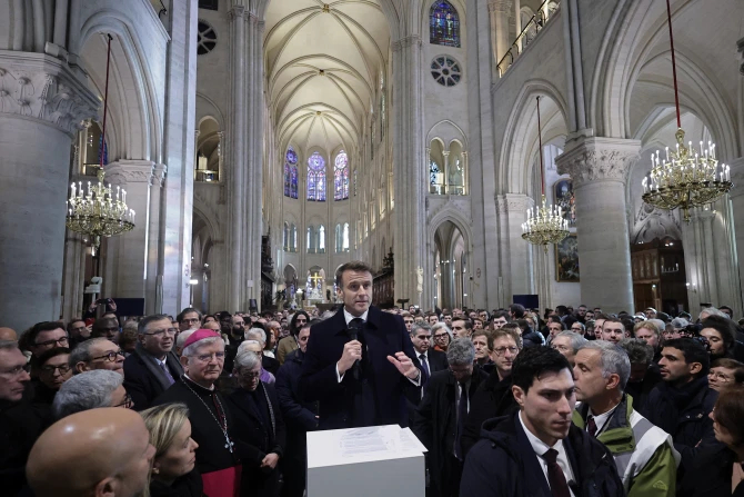 Photo and video images have been circulating across social media and various news outlets from French President Emmanuel Macron’s visit to Notre Dame on Friday, giving the world a first glimpse into the cathedral’s interior since a fire broke out across its roof and spire in April 2019.
