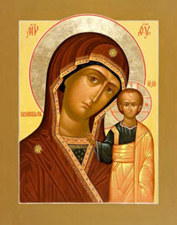 Молитва пред иконою Божией Матери «Казанской» Молитва пред иконою Божией Матери «Казанской» О, Пресвята́я Госпоже́ Влады́чице Богоро́дице! Со стра́хом, ве́рою и любо́вию пред честно́ю (и чудотво́рною) ико́ною Твое́ю припа́дающе, мо́лим Тя: не отврати́ лица́ Твоего́ от прибега́ющих к Тебе́. Умоли́, милосе́рдая Ма́ти, Сы́на Твоего́ и Бо́га на́шего, Го́спода Иису́са Христа́, да сохрани́т ми́рну страну́ на́шу, Це́рковь же Свою́ Святу́ю непоколеби́му да соблюде́т и от неве́рия, ересе́й и раско́ла да изба́вит. Не и́мамы бо ины́я по́мощи, не и́мамы ины́я наде́жды, ра́зве Тебе́, Пречи́стая Де́во: Ты еси́ всеси́льная христиа́н Помо́щница и Засту́пница. Изба́ви же и всех, с ве́рою Тебе́ моля́щихся, от паде́ний грехо́вных, от наве́та злых челове́к, от вся́ких искуше́ний, скорбе́й, боле́зней, бед и от внеза́пныя сме́рти. Да́руй нам дух сокруше́ния, смире́ние се́рдца, чистоту́ помышле́ний, исправле́ние грехо́вныя жи́зни и оставле́ние прегреше́ний, да вси, благода́рне воспева́юще вели́чия и ми́лости Твоя́, явля́емыя над на́ми зде на земли́, сподо́бимся и Небе́снаго Ца́рствия, и та́мо со все́ми святы́ми просла́вим пречестно́е и великоле́пое и́мя Отца́, и Сы́на, и Свята́го Ду́ха во ве́ки веко́в. Ами́нь.