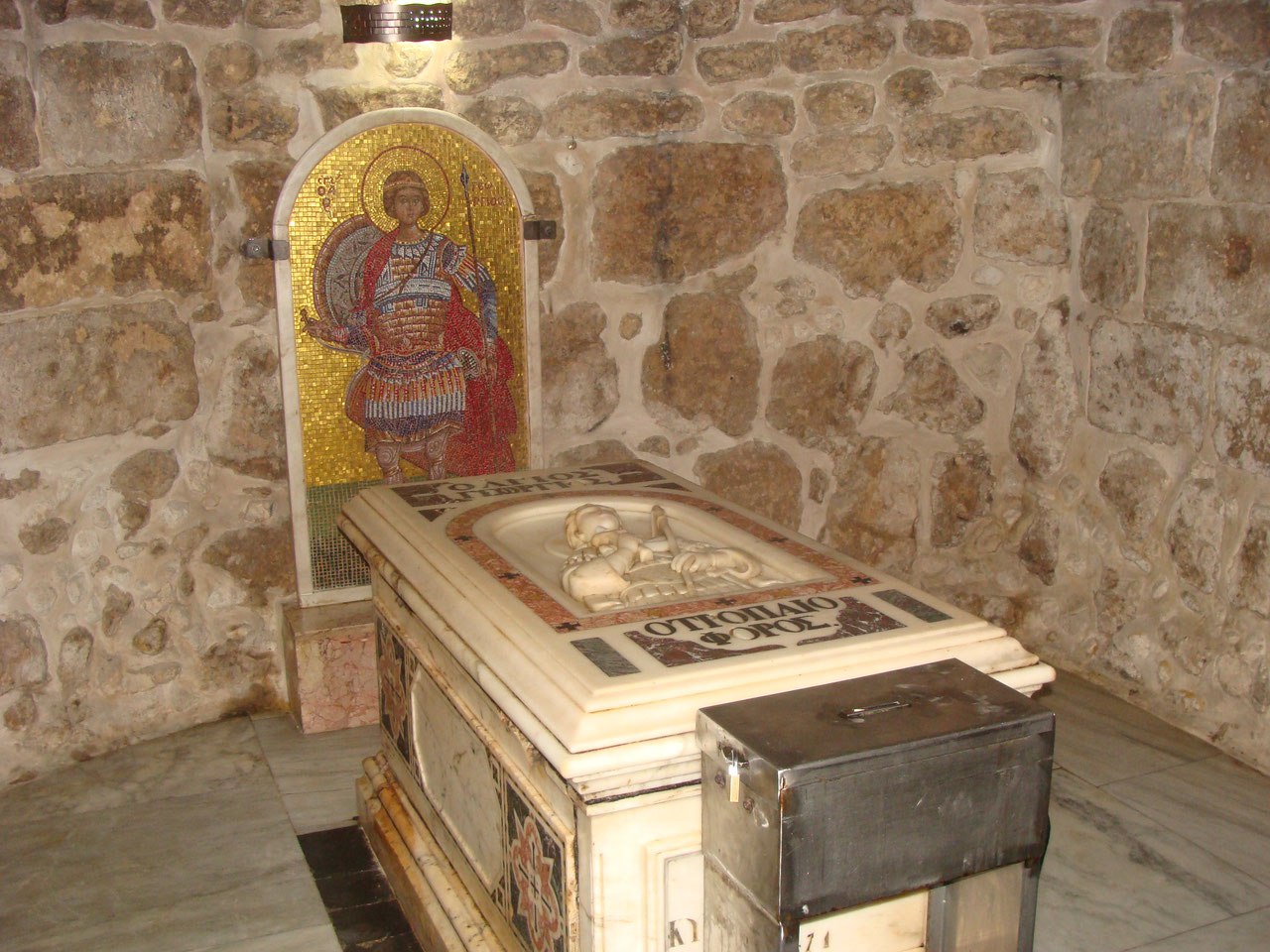 Почитаемый как Восточной, так и Западной церковью святой Георгий Победоносец после великих мучений был усечён мечом в Никомидии в 303 году. Слуга угодника Божьего взял его обезглавленное тело и привез на Святую Землю, в Аримафею (ныне Рамла), где жила мать святого – и там предал земле по христианскому обычаю. На мощах великомученика христианская община этого города совершала богослужения, тогда еще тайно.