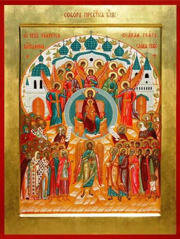 Знакомая нам иконография Собора Пресвятой Богородицы опирается на текст рождественской стихиры преподобного Иоанна Дамаскина и пришла в русские земли из Сербии не позднее XIV века. На иконе праздника в центре изображается Пресвятая Богородица с Младенцем на коленях, а вокруг нее – ангелы, пастухи с посохами, волхвы с дарами, праведный Иосиф Обручник, апостол Иаков Брат Господень, преподобный Иоанн Дамаскин и иногда – другие святые.