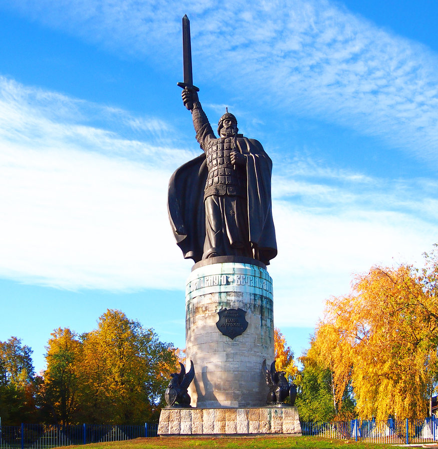 Автор памятника – известный российский скульптор В. М. Клыков. Установлен памятник рядом с живописной набережной Оки, на площади, где ранее располагался Муромский кремль. Скульптура высотой 21 метр, если измерять ее от основания до острия поднятого богатырской рукой меча, изображает святого Илию в доспехах, шлеме и плаще. При этом из-под броней проглядывает монашеское облачение, а левой рукой богатырь держит у груди крест с распятием. Бронзовая фигура монаха-воина водружена на высокий постамент, который поддерживают четыре фигуры грифонов. Левая лапа каждой из мифических птиц опирается на щит, символизируя мужество и стремление к победе.