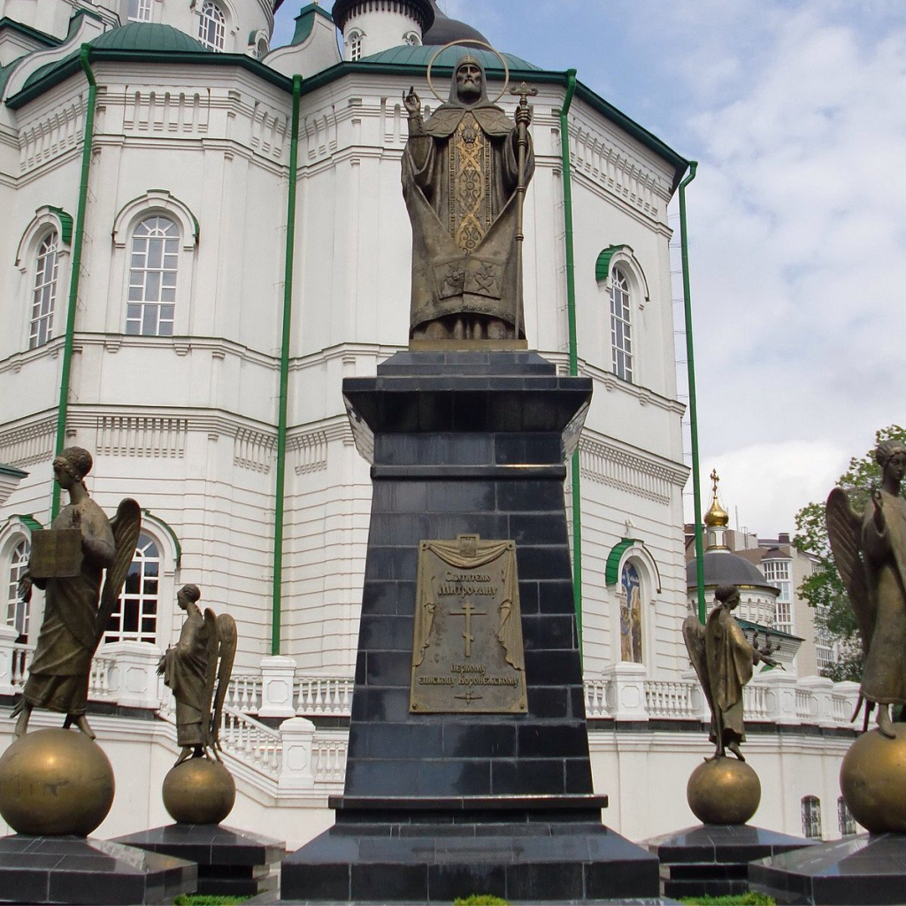 Авторами скульптуры стали Иван Дикунов, Эльза Пак, а также их сыновья Максим и Алексей. Скульптуру чтимого святого отлили на заводе имени Коминтерна. Архитектурное решение выполнил В.П. Шевелев. Высота скульптуры с постаментом – 8,5 метра. Установка памятника чтимому святому была приурочена сразу к двум датам: 380-й годовщине со дня его рождения и 300-й – со дня преставления. В день торжественного открытия памятник чтимому святому освятили митрополит Крутицкий и Коломенский Ювеналий и митрополит Воронежский и Липецкий Мефодий.