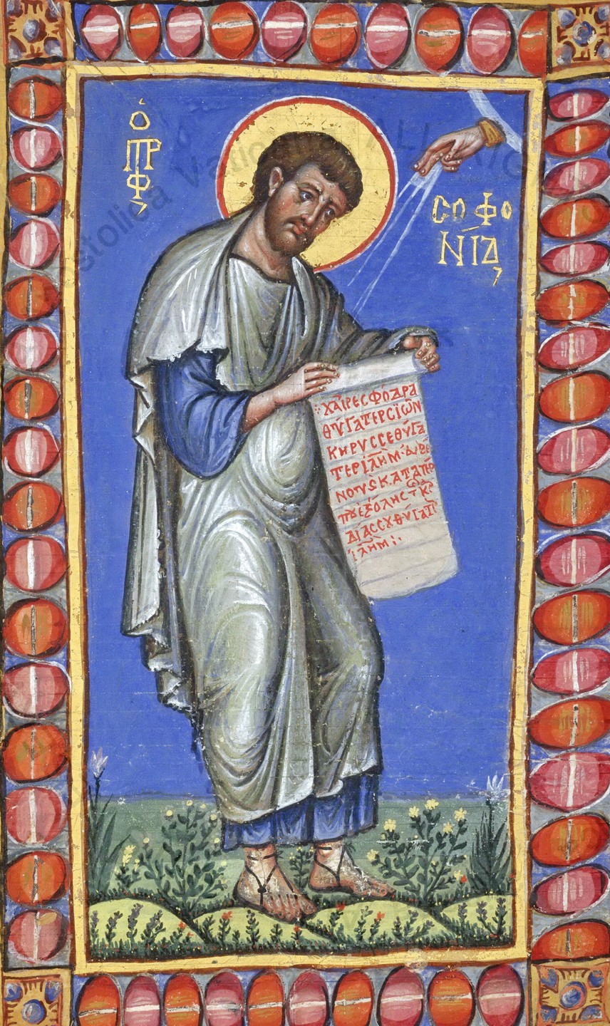Явился еси светозарен Божественным Духом,/ пророче Софоние,/ Божие явление возгласив:/ радуйся зело, дщи Сионя Иерусалимова, проповеждь:// се Царь Твой грядет, спасаяй.