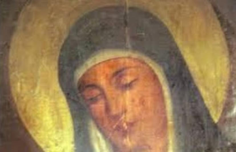 Когда и откуда этот образ появился в храме Гроба Господня, никто уже не помнит. В приделе Жен Мироносиц долгие годы было три иконы. Центральная – на месте стояния Пресвятой Богородицы, у нее возожжена лампада. По одну сторону от нее – совсем тёмный образ, изображение на котором невозможно различить, и по другую – лик Царицы Небесной, глаза Которой опущены. Этот образ, у которого иерусалимские христианки традиционно ставили свечи, почитался чудотворным – но почему, объяснить давно никто не мог. До весны 1986 года, пока не произошли известные события.