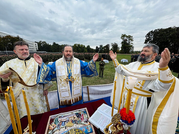 Божественную литургию, которая совершалась на стадионе около расположения, возглавил военный епископ Липлянский Досифей (Радивоевич) в сослужении протоиерея Джордже Стоисавлевича, шефа кабинета Патриарха Сербского, а также военных священников майора Предрага Докича и капитана Славко Папича.