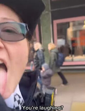 Когда Лондон начала отстаивать свое право петь на улице, полицейский волонтер показала язык на камеру.