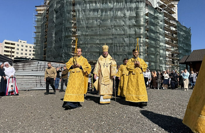 После чтения благодарственных молитв владыка Владимир преподал всем благословение и направился к Свято-Покровскому собору, где ознакомился с ходом работ по восстановлению и строительству, дал соответствующие текущему этапу рекомендации и выслушал доклад настоятеля собора протоиерея Гавриила Агабекова о планах на ближайшие строительные недели.