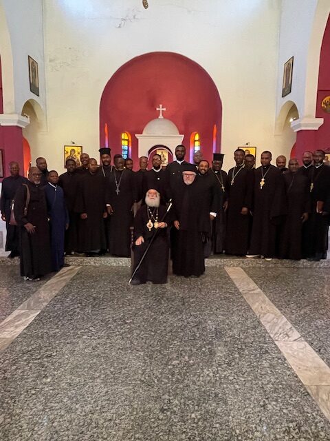 Затем наблюдатель митрополит Гвинейский Георгий приветствовал Александрийского Предстоятеля, чьи шаги привели его на родину в Нигерии спустя двенадцать лет, и поблагодарил его за то, что за несколько дней до созыва Священного Синода Патриархии и его многочисленных обязанностей в Египте он решил быть рядом со своей паствой в Нигерии, чтобы поднять боевой дух духовенства и народа и утешить их в связи с отлучением от церкви своего митрополита.