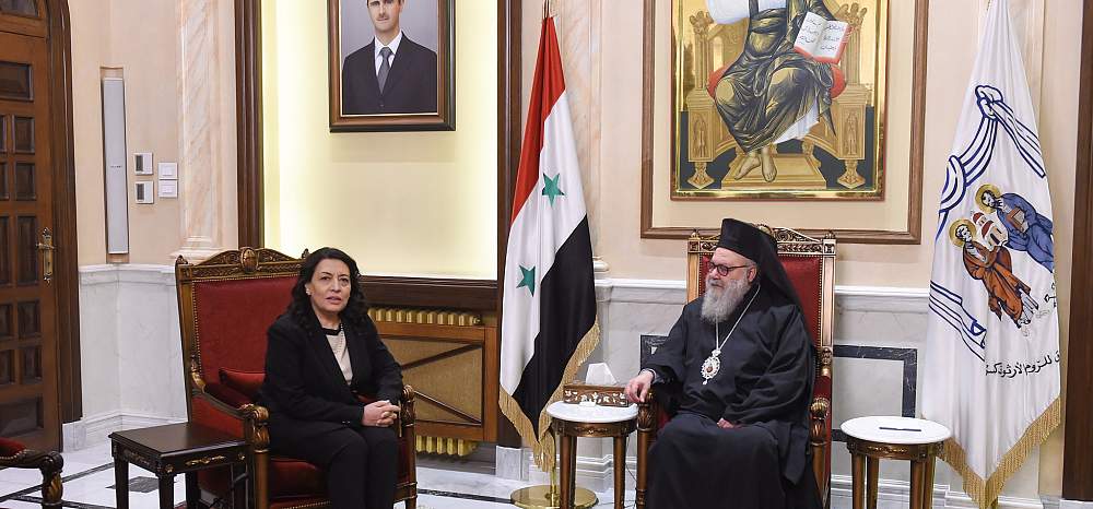 Блаженнейший Патриарх Иоанн X принял Ее Превосходительство госпожу Ламию Шаккур, министра местного управления и окружающей среды Патриаршей штаб-квартиры в Дамаске.