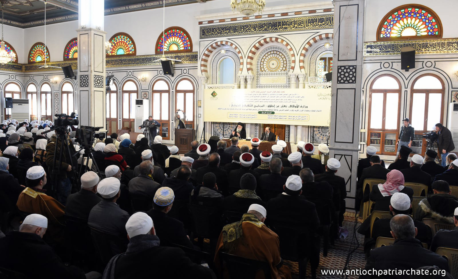 Блаженнейший Патриарх Антиохийский и всего Востока г-н. 6 февраля 2024 года в мечети Аль-Осман в Дамаске совместно с министром по делам религиозных общин Сирии шейхом Мохаммедом аль-Сайедом Йован провел диалоговую лекцию на тему «Важность религии в укреплении семьи и общества».
