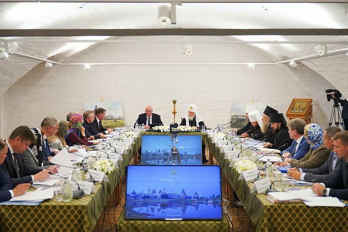 Учитывая огромное значение Соловков — духовное, культурное, историческое — мы все, собравшиеся за этим столом, должны позаботиться о том, чтобы максимально использовать наше время, время религиозной свободы, время уважения к Православию, когда руководители нашей страны православные люди, когда всё нам благоприятствует. Чтобы в это время мы могли решить проблемы, которые существуют, в том числе, на Соловках, хотя, конечно, не только на Соловках.