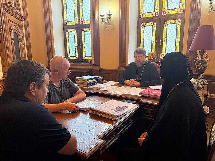 Были рассмотрены первоочередные планы по восстановлению пострадавшего Свято-Иверского храма и завершению строительства здания монастырского корпуса.