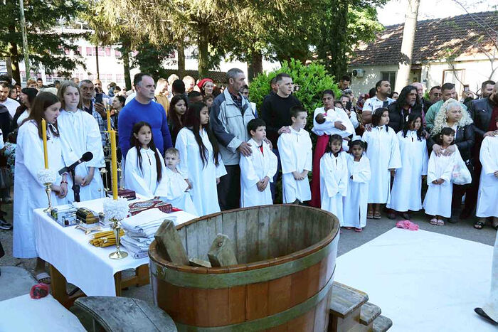 На праздник Входа Господня в Иерусалим Патриарх Сербский Порфирий совершил соборное Крещение учащихся начальных школ в белградском районе Рипань. 28 апреля он совершил Божественную литургию в храме Святой Троицы, а затем состоялось Крещение, которое приняли около 30 учеников окрестных начальных школ.