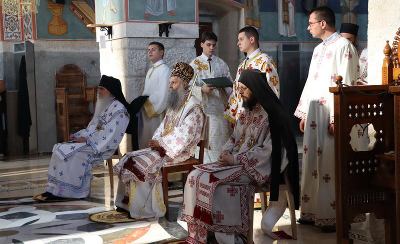 В проповеди после прочтения Евангелия Святейший Патриарх Сербский г-н. Порфирий учил паству, что человек свободен только в том случае, если он находится в общении с Богом, и что святые архангелы являются примером и образцом для подражания свободной жизни в согласии с волей Божией. «Мы были созданы свободными существами и созданы, чтобы использовать нашу свободу для прославления Бога». Прославлять Бога — значит любить Бога, а это значит подчиняться Богу. И не только мы, люди, но и все творение создано для прославления Бога и чтобы в нем прославился Бог. И человек был создан временно немного меньшим, чем ангелы. Однако ему все подвластно, чтобы в нем и через него все могло прославиться. Как? Чтобы каждая мысль была наша – хвалебная речь, молитва. Каждое слово, каждое дело, все, что мы делаем и чем мы являемся – призвано быть Литургией, быть восхвалением, которое мы возносим Богу, а с нами и всему творению. Через хвалебную речь и прославление Бога, через жизнь как Литургию мы строим мир внутри себя, радость, мы строим мир с Богом, но и мир с ближними, мир со всем творением Божиим. Потому что прославление означает не что иное, как отдачу себя Богу, ближнему и всему творению. Хвала означает давать, а не только брать. Поэтому все было создано, чтобы стать одной песней, симфонией, управляемой человеком, дирижируемой человеком, дирижируемой нами. В зависимости от того, как мы ведем себя, пользуемся ли своей свободой или злоупотребляем ею, будет зависеть и то, по какому пути пойдет весь мир, будет зависеть и то, как мы поймем волю Божию, будет зависеть и то, как мы увидим ближнего своего. а от того, как он к нам отнесется, будет зависеть и то, какое у нас будет отношение ко всему этому творению Божию, и как оно нам ответит", - сказал, среди прочего, Святейший Патриарх Сербский господин Сербский. Порфир.