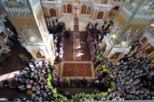 Богослужение состоялось в день празднования Происхождения (изнесения) Честных древ Животворящего Креста Господня — в народе этот день называют Медовым Спасом. 14 августа принято освящать мед, собранный в этом году. В конце богослужения митрополит Георгий совершил освящение меда.