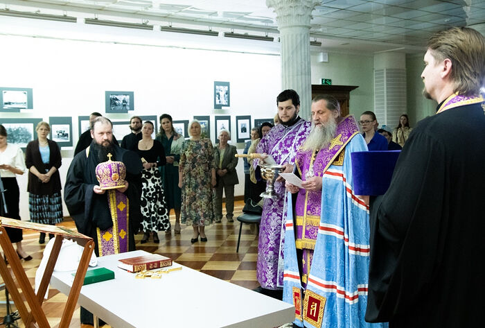 Открытие выставки началось с молебна святым Царственным Страстотерпцам, который совершил митрополит Хабаровский и Приамурский Артемий.