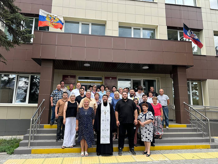 Молитву на начало всякого дела и освящение кабинетов и лабораторий совершил настоятель Свято-Троицкого храма города Мариуполя протоиерей Иоанн Попов.