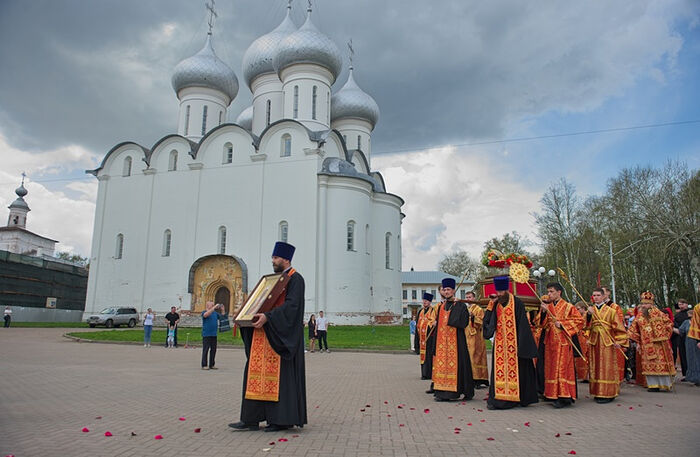 Далее мощи были торжественно перенесены в Воскресенский кафедральный собор, где перед святыней началось служение ежечасных молебнов, которое проходило до 19.00 воскресенья, а затем продолжилось в понедельник, 19 мая, с 10.00 до 19.00. Заключительный молебен святителю Тихону возглавит митрополит Савва, после чего ковчег с мощами будет провезен по улицам Вологды и отбудет в Костромскую епархию.