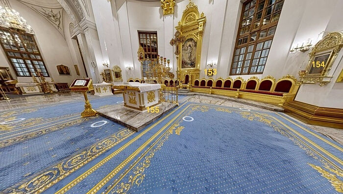 Кроме того, в 3D-экскурсию добавляются "видимые метки" — интерактивные обозначения. При нажатии на них появляются название, описание и фотография места или детали внутреннего убранства храма.