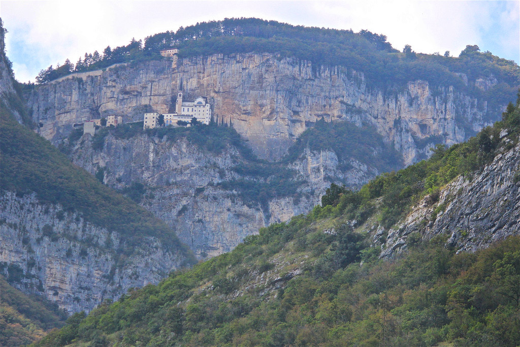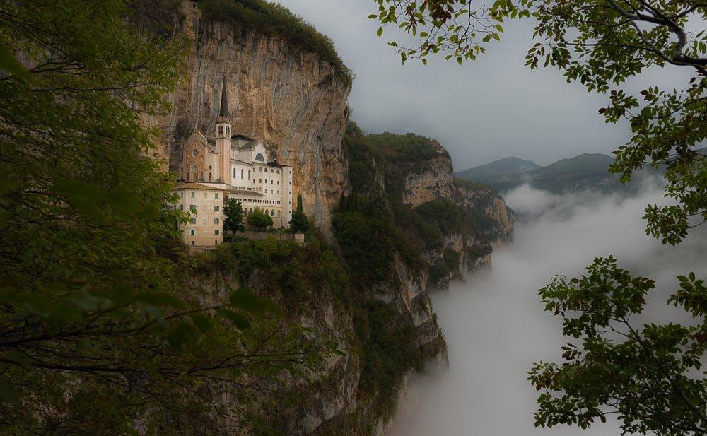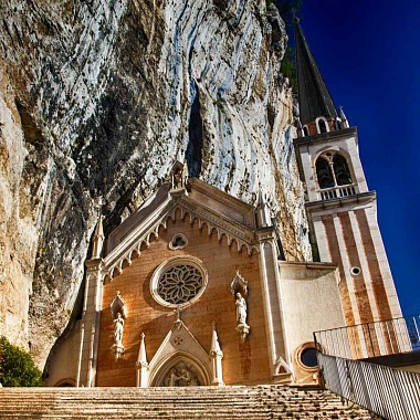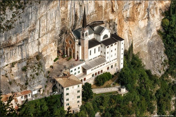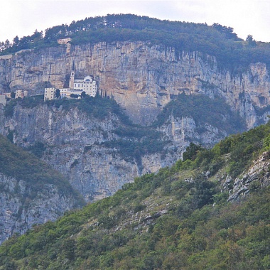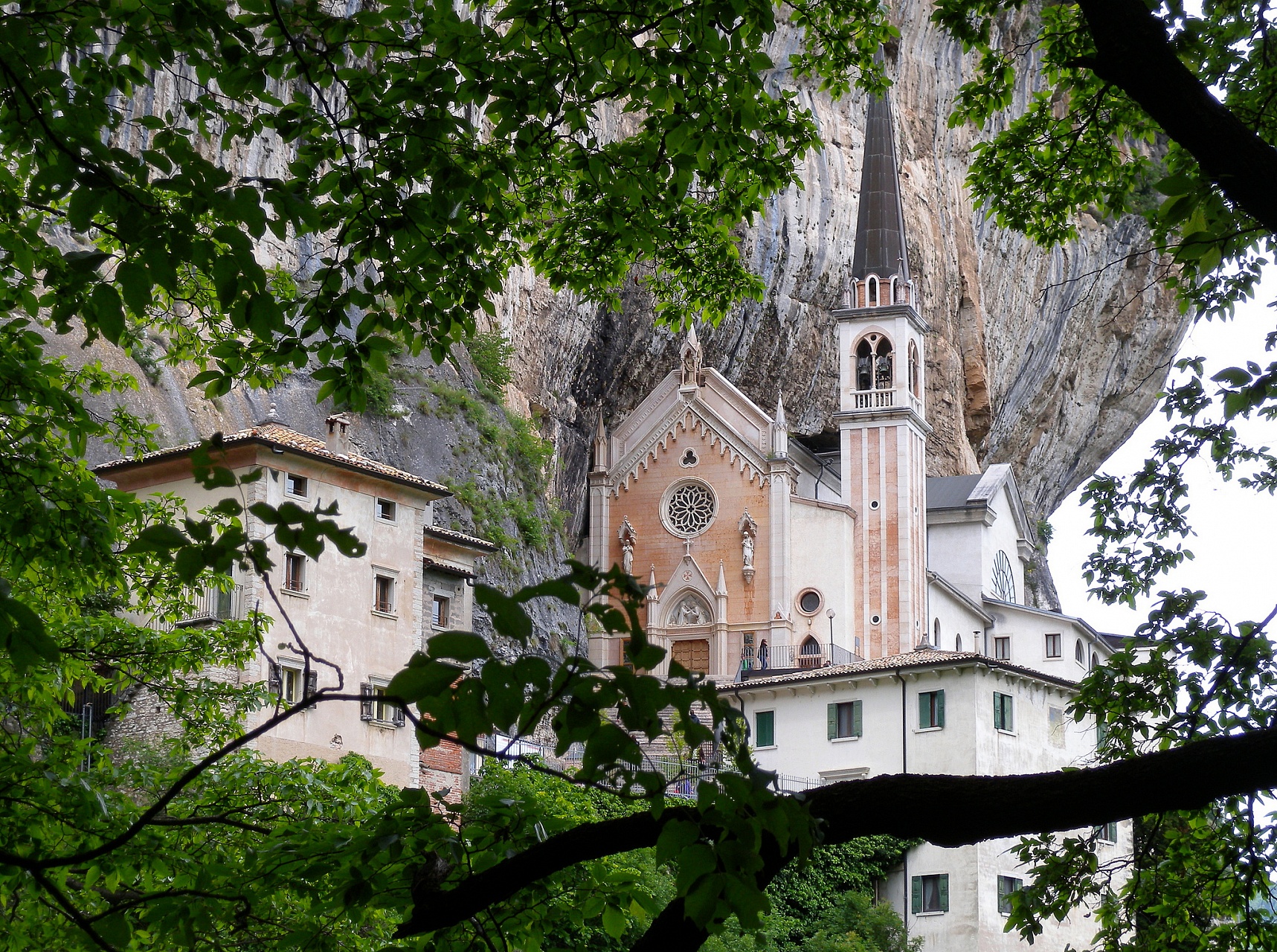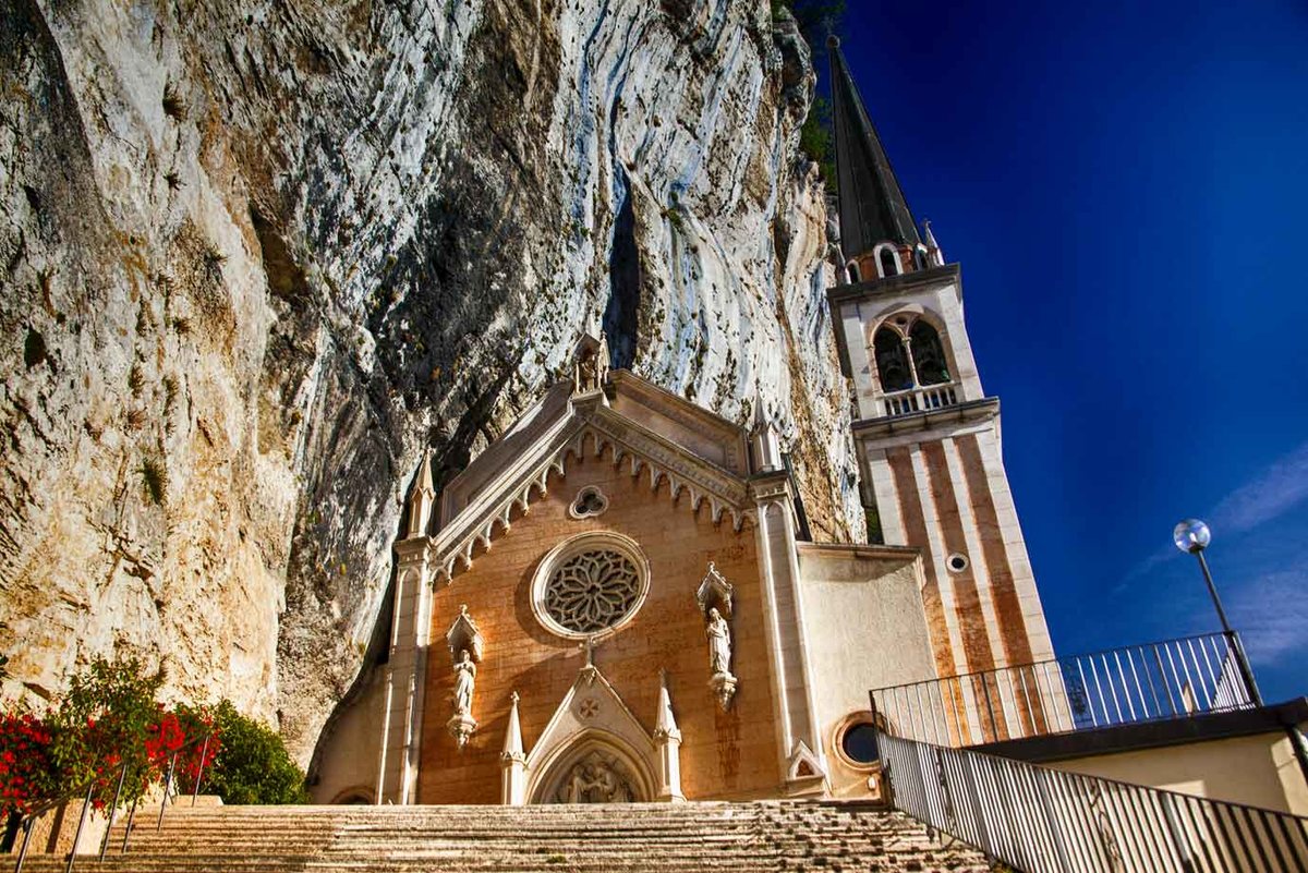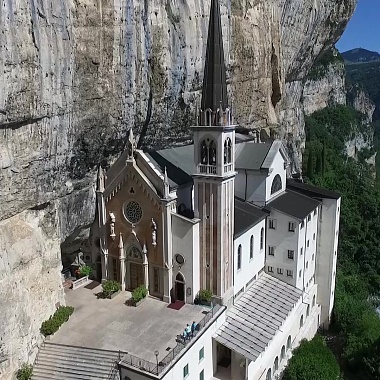 Вид святилища, расположенного неподалёку от живописного озера Тренто, вызывает закономерный вопрос: каким образом в средневековье, с его относительно несложными технологиями, стала возможной постройка столь грандиозного храмового комплекса на выступе почти отвесной скалы? Так или иначе, зодчие XVI столетия с этой задачей справились — а их коллеги в новое и новейшее время расширили и реконструировали храм, в результате чего он приобрёл свой нынешний вид и стал одной из самых посещаемых паломнических святынь Италии.
