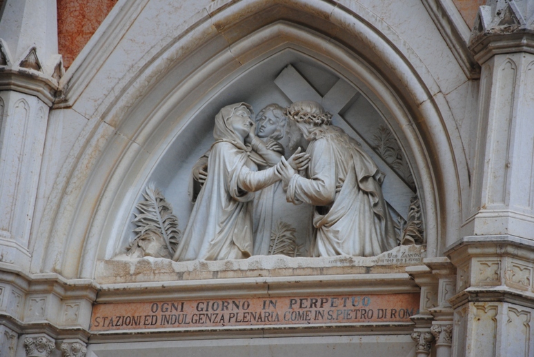 На севере Италии, в 45 километрах от города Верона находится святилище Мадонна делла Корона (Santuario Madonna della Corona) — уникальный храмовый комплекс, будто бы вросший в скалу. Возведён он на месте, где, согласно церковному преданию, в XVI веке произошло явление Скорбящей Мадонны.