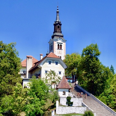 Блед — всемирно известный горнолыжный и бальнеологический курорт в Словении — ежегодно привлекает тысячи отдыхающих и путешественников со всего мира. Наряду в одноимённым замком, возвышающимся над вершиной горы и чаще всего изображаемым на открытках и туристических буклетах, Блед имеет ещё одну, ничуть не менее значимую достопримечательность: действующий католический храм Успения Девы Марии, стоящий посреди озера на небольшом островке.