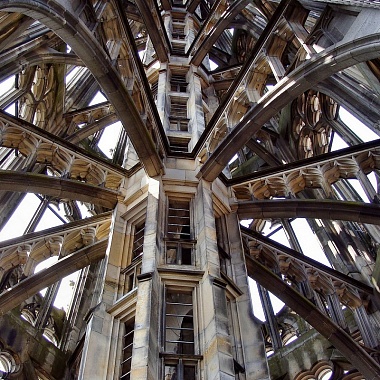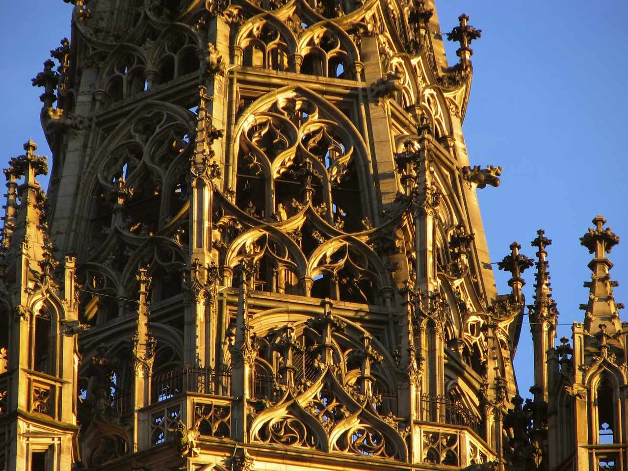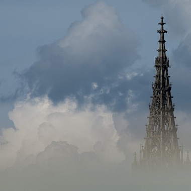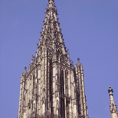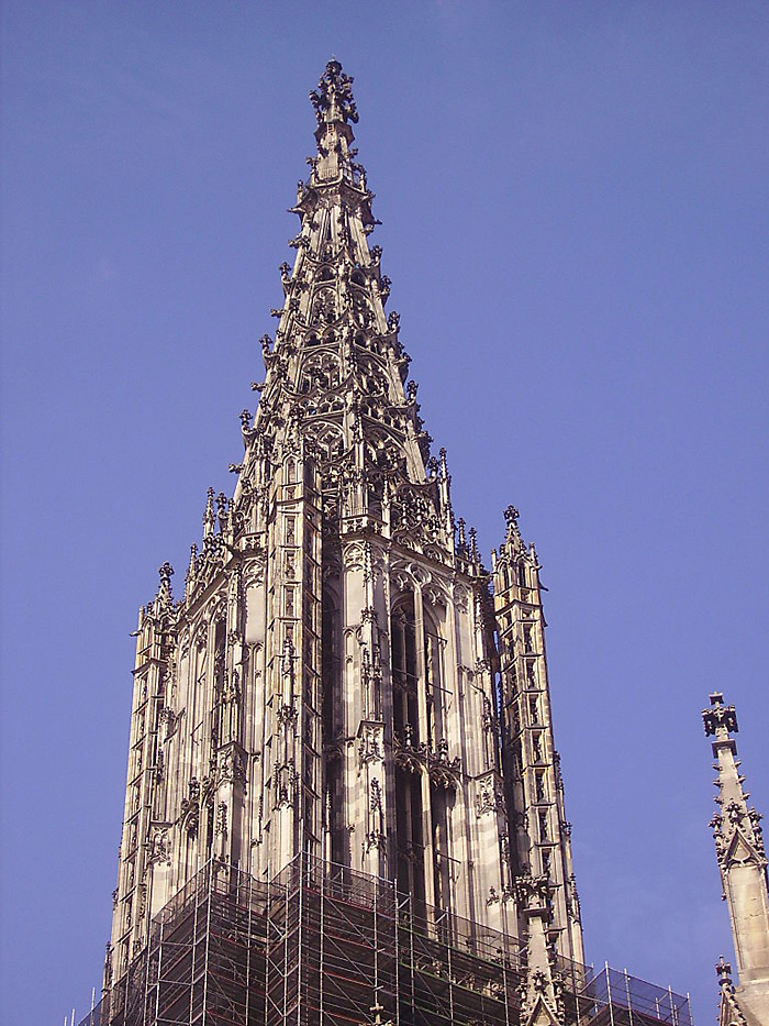 Возобновилось строительство только три века спустя. В 1844 году конструкцию здания укрепили, наконец достроили не завершённые прежде башни за хорами— а затем, в 1890 году, принялись достраивать и главную башню. Через десять лет её высота по верхушке шпиля достигла 161,5 метра и остается такой по сей день. Это самая высокая колокольня в мире, и любой желающий может подняться на её смотровую площадку, находящуюся на высоте 143 метра, преодолев 768 ступеней. Отсюда можно разглядеть не только город с окрестностями, но в хорошую погоду даже Альпийские горы вдалеке.