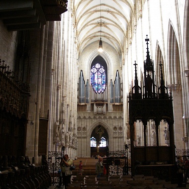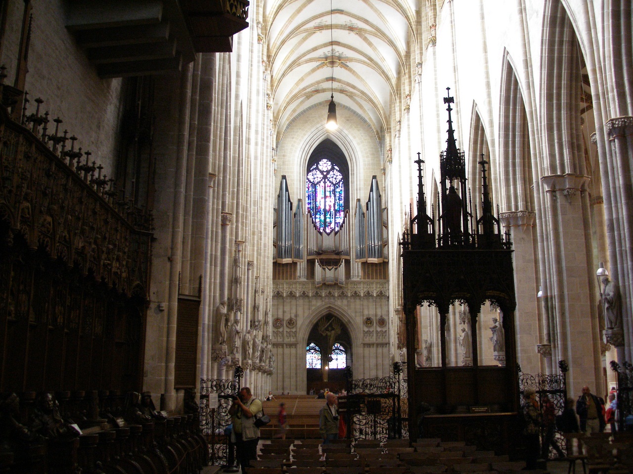 Главный неф отделён от боковых колоннами. На них в XIX веке на трехметровой высоте были установлены статуи. А вот консоли статуй — гораздо более ранней работы: они относятся к XIV веку. Ангелы с музыкальными инструментами, дева, чьи волосы создают основной объем консоли — многие из этих архитектурных деталей представляют собой впечатляющие образцы готического искусства.