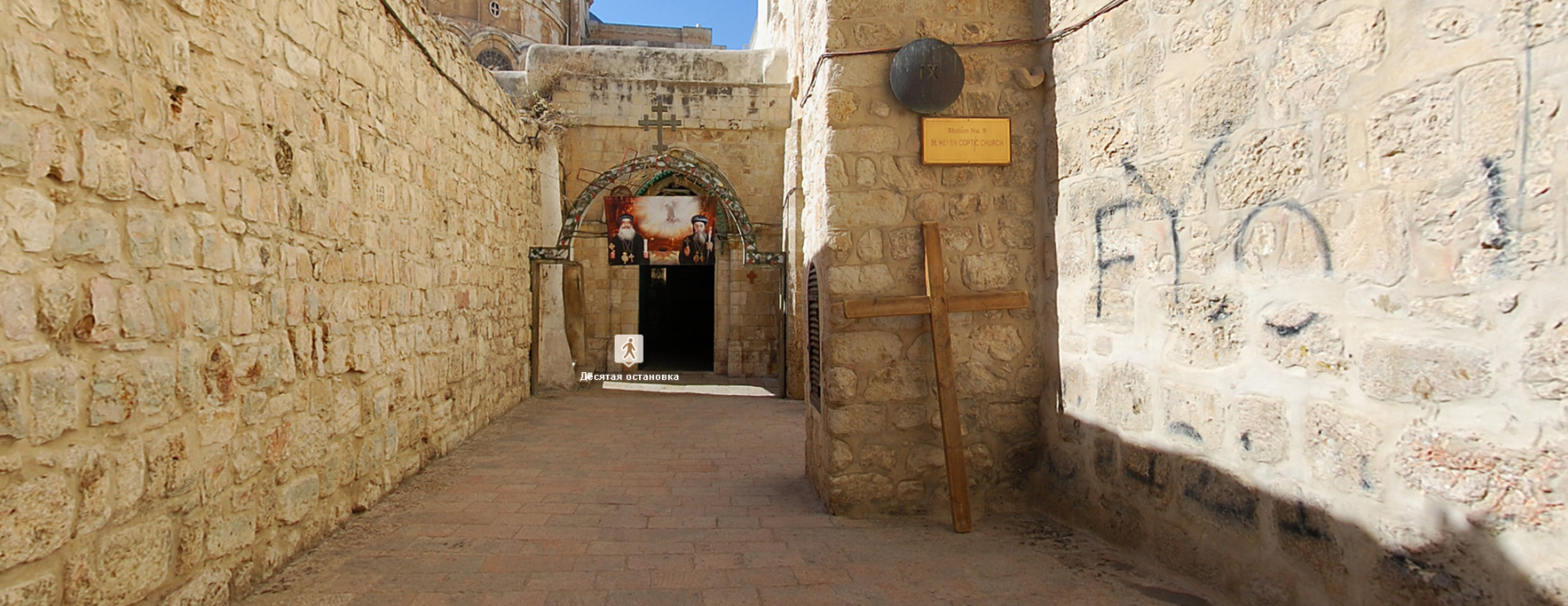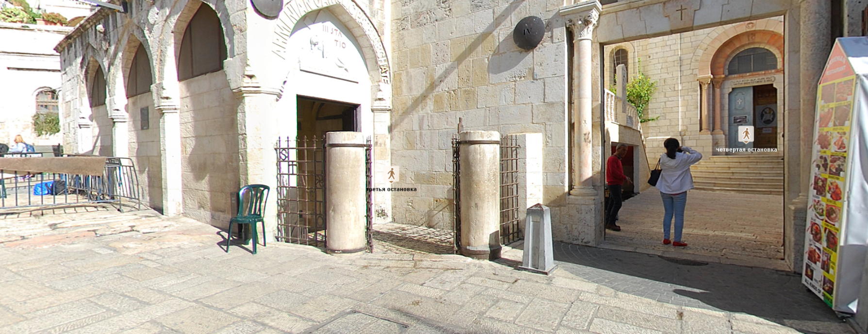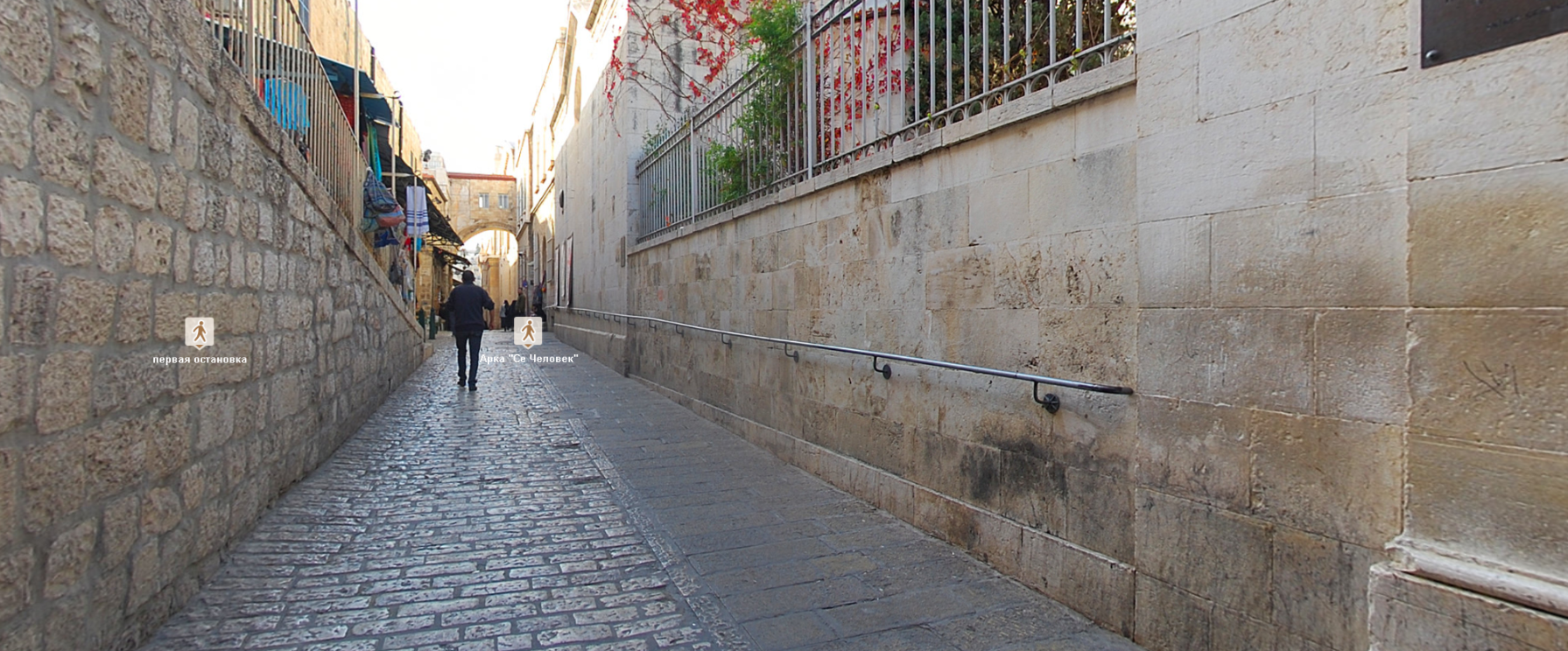 Добро пожаловать в виртуальный тур по одному из самых значимых мест для христианства - Виа Долороса. Крестный путь, также называемый Дорогой скорби - это маршрут, по которому Спаситель прошел от места вынесения ему приговора до места распятия на Голгофе. Во время его последнего пути происходили различные события, которые останавливали печальное шествие. На сегодняшний день канонизировано 14 остановок или станций, каждая из которых отмечена часовнями или церквями.Девять остановок указаны в Евангелиях, прочие же описаны в преданиях, соответствующих христианской традиции. Суть и духовная сторона этой традиции - дать верующим представить хотя бы малую часть страданий, перенесенных на этом пути Господом нашим.