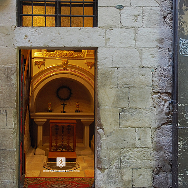 Седьмая остановка - место второго падения Христа. В этом месте стояли Судные врата. Здесь осужденному в последний раз зачитывался приговор и оспорен он уже быть не мог. Каждый осужденный до судных врат еще имел шанс на пересмотр приговора, однако, преступив их, он подтверждал свою виновность. Проходя через врата Христос споткнулся об их порог и упал.Мы находимся внутри немецкой лютеранской церкви Христа Искупителя , посвященной 7 остановке крестного пути. Она была построена в конце 19-го века на месте храма святой Марии Латинской, датируемого 11 веком. Церковь, построенная в романском стиле была освящена в 1898 году. На церемонии присутствовал кайзер Вильгельм II