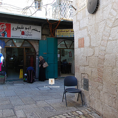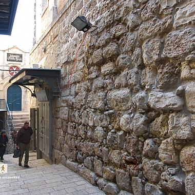 Мы находимся на первой остановке крестного пути - место суда над Иисусом. Тут некогда располагалась резиденция римского прокуратора Иудеи. Теперь здесь действующая мусульманская школа Эль-Омарийя.Именно тут прокуратор Понтий Пилат спросил у толпы: Какое же зло сделал этот человек? Толпа кричала: да будет распят он. Тогда прокуратор отпустил преступника Варраву и приговорил Христа к казни. На этом месте находится часовня Осуждения. Плиты пола сохранились с тех времен.